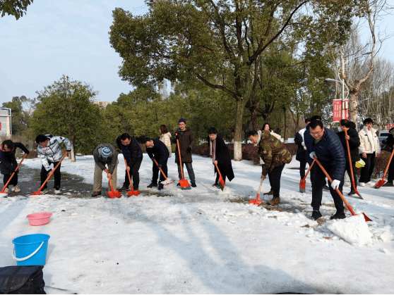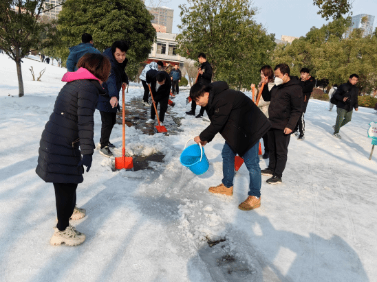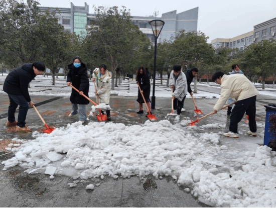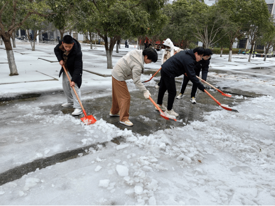 (通讯员 周贝)近日,受强冷空气影响,一场突如其来的冰雪天气给师生校园安全出行带来了不小的困扰。bwin必赢中国官网党委迅速响应学校号召,组织“红‘语’伞”党员先锋队开展铲雪除冰活动,为师生在校学习生活保驾护航。