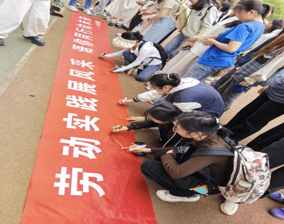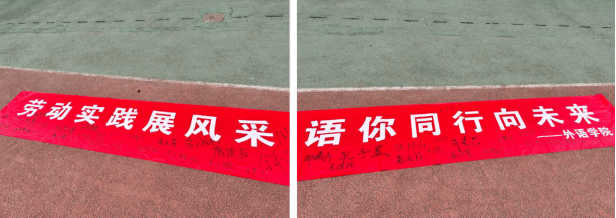 到达活动场地,学院党务干事周贝向大家阐释了劳动实践的价值和意义,帮助同学们明确参与劳动的重要性,树立正确的新时代劳动观,组织同学们在活动横幅上签名留念。