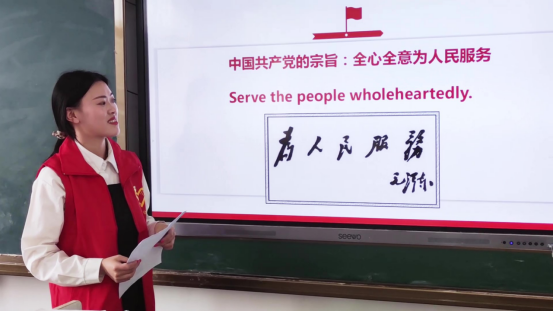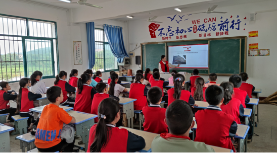 线下讲党史,笃信笃行担使命。志愿服务队队员2019级谢瑶同学通过“大手牵小手,党史入童心”的微党课,向小学生们分享红色故事、抗疫英雄事迹,把党的历史深植在留守儿童心中,增强他们的爱党爱国情感,让党的百年历史点亮孩子们的梦想,引导他们听党话、跟党走,勇做担当民族复兴大任的时代新人。