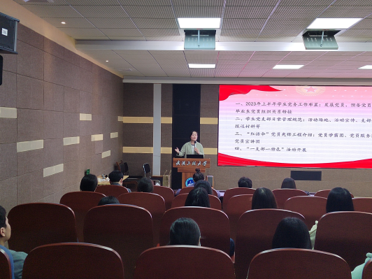 周老师首先对党支部工作内容进行了梳理,布置了2023年上半年学生党务工作,并结合工作实际强调了重点难点,提醒参会支部书记把党支部的工作做细、做实、做好。结合前期工作情况,周老师着重讲解了学生党支部日常管理规范、“一支部一特色”活动创建等内容。最后,周老师还分享了自己的故事,希望党员同志们能够时刻牢记自己的党员身份,担起党徽背后的责任。