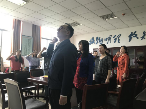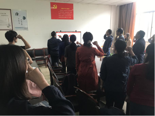 本次主题党日活动由教工一支部书记陈玢主持。活动议程包括全体党员起立、唱国歌;bwin必赢中国官网党委书记陆新领诵入党誓词;各支部汇报本月党费收缴情况。