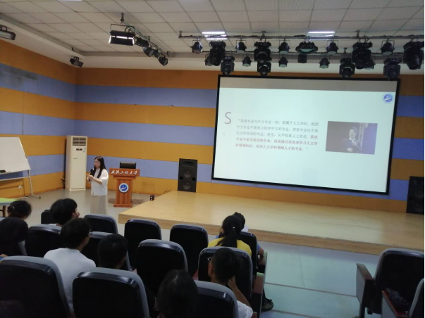 刘茜茜老师首先为同学们作专业介绍,一句“你们所熟知的名人中有哪些出自英语专业?”瞬间点燃了现场的热情,激发了新生们对专业未来的无限遐想。紧接着,刘老师凭借深厚的学术功底,系统阐述了英语专业的培养蓝图,从课程体系、职业规划到能力培养,逐一剖析,并通过展示杰出校友的成功故事,增强了同学们的专业归属感和自信心。她鼓励同学们要静心学习、沉心历练,以专业知识为基石,拓宽国际视野,提升跨文化交流能力,致力于成为具有国际竞争力的复合型人才。