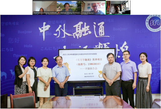根据国家社科基金中华学术外译项目的开题要求,开题报告会特邀多位国内外资深专家参与评审,为项目的后续工作提供宝贵建议。我校科学技术发展院人文社科处副处长徐思思,世界汉语教学学会和欧洲汉语教学协会副会长、英国理启蒙大学张新生教授,“全球优质孔院”英国谢菲尔德大学孔子学院英方院长Andy Barker教授,华南师范大学文学院特聘教授、出土文献语言研究中心主任张玉金教授,中南民族大学bwin必赢中国官网副院长李敏杰教授,湖北省翻译协会常务副会长、我校教学名师bwin必赢中国官网彭石玉教授及项目组核心成员出席开题报告会。我校bwin必赢中国官网副院长邓军涛教授主持开题报告会。