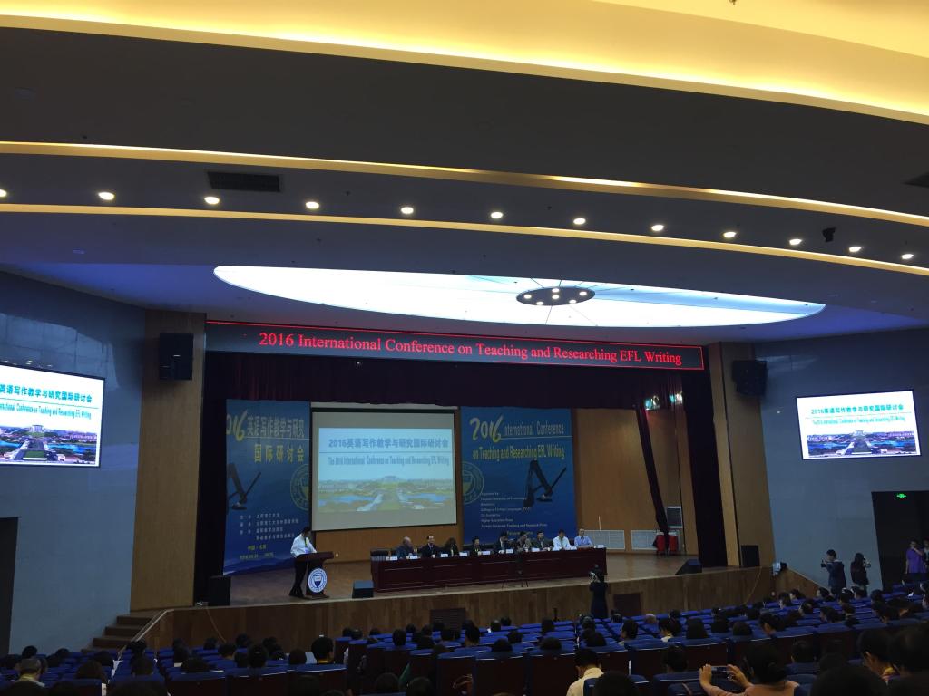 此次会议有来自美国密西根州立大学、英国伯明翰大学、加拿大卡尔顿大学、新西兰奥克兰大学、北京外国语大学、中山大学的6位著名专家学者进行大会报告,有来自国内外130多所高校的500余位专家、学者在18场会议分论坛进行论文宣读交流,就英语写作教学的理论与实践开展深入研讨,以应对经济全球化给高等教育带来的挑战,加强英语写作教学与研究国际交流。我院凃朝莲、王伟老师应邀参会并宣读论文,凃朝莲教授还应邀主持了第八分会论坛的学术讨论。