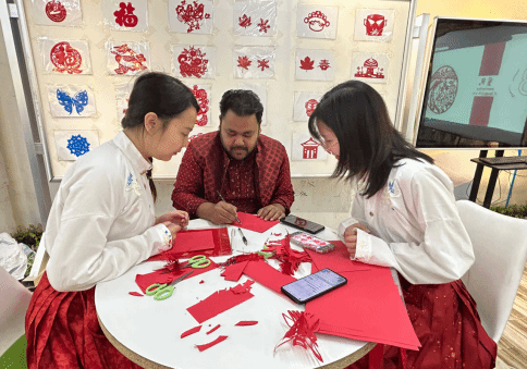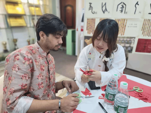 bwin必赢中国官网学生代表潘亦佳说到:“通过参加此次活动,我深刻体会到了文化交融的力量。与留学生们互动,使得文化交流变得更加生动具体。大家在一起共度美好时光、放松身心、建立友谊,对我来说是一次难忘的经历。”留学生Ali表示:“今天是一个愉快的经历,因为有机会认识很多朋友。在活动期间,我们一起唱歌,一起画画,一起剪纸。文化的交流和碰撞创造了温馨的氛围,促进了新的联系和友谊。”