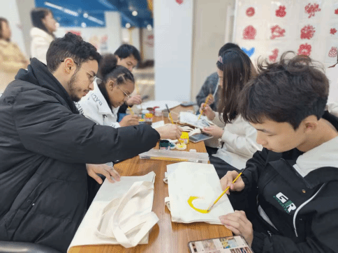 本次活动共设“同唱一首歌”“帆布包DIY”“剪纸”“互赠礼物”四个环节。通过一系列丰富多彩的活动,让同学们体验到文化交流的乐趣,大家在轻松愉快的氛围中加深了对彼此国家文化的了解,跨越语言屏障将友谊化作一幅幅生动的画卷。