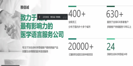 北京雅信诚医学信息科技有限公司成立于2000年,专注于为生命科学领域客户提供跨越产品完整生命周期的医学语言服务,倡导并践行客户至上、质量为本、卓越运营、持续创新、共同成长的发展理念,已经完成了20000+的注册申报项目,与全球630多家客户建立联系,是一家在国内外都颇具影响力的公司。